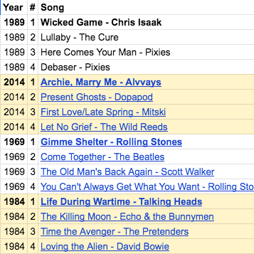 A group of music fans among us have taken on the sizeable task of determining the best songs of each year from 1963 to the present, as well as the years going back to 1925 in five-year blocks. I manage the technical infrastructure of the project. Using Google Forms, participants submit up to 6 songs for each randomly selected year. The songs are seeded according to the order each participant submits them. They are then divided up into a bracket of one-on-one matches. These matches are decided by votes conducted in a dedicated Discord channel. We track a few analytics, such as performance by genre (pulled in using Spotify’s API), genre preference by participant, etc.